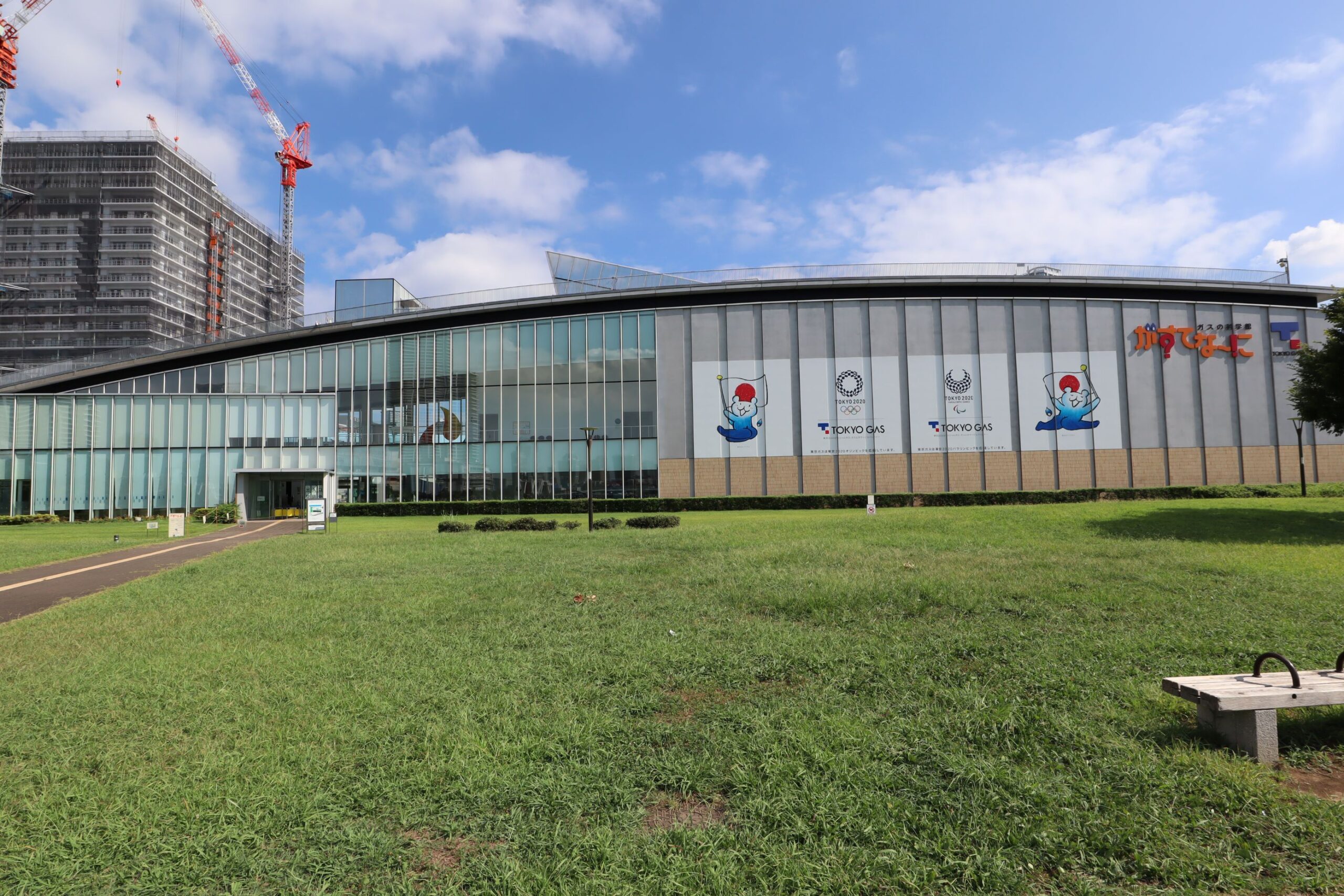 豊洲の臨海部に位置する、弧を描いて広がる建物の「がすてなーに」はガスの科学館であり、暮らしに直結するガスの特徴や、SDGs、地球温暖化、超高齢化社会などの社会問題について、楽しみながら体験し、学ぶ事が出来る施設となっています。